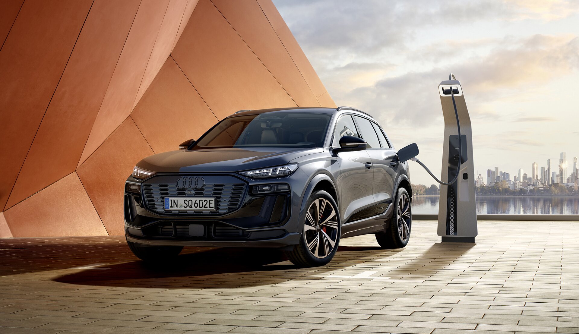 Audi Q6 e-tron har et dynamisk og moderne design med en slank, aerodynamisk form. Lysteknologi er en viktig del av Audis DNA. Med verdens første aktive digitale lyssignatur innleder Q6 e-tron en ny æra preget av særegen design og estetikk unik for Audi. Modellen er den første modellen på den nyutviklede Premium Platform Electric (PPE), som gir rom for rask lading og effektiv batteribruk, samt lang rekkevidde på én lading.